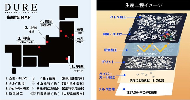 株式会社佳雅(よしまさ/神奈川県横浜市:代表取締役 遠藤敦史)が昨年スタートさせた国産シルク技術と横浜の歴史を掛け合わせたスカーフブランド、エクストリームシルクDuRē(デュレ)と、株式会社パル(本社:大阪府大阪市:代表取締役社長 松尾勇)が展開するレディースバッグブランドrusset(ラシット)は、高機能シルクスカーフの販売を2月下旬から開始いたします。