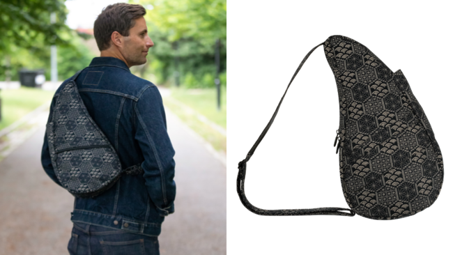 首や肩、背中にかかる負担を軽減しながらたくさんの物を運べる人間工学デザインのショルダーバッグ。世界27か国以上で展開中。