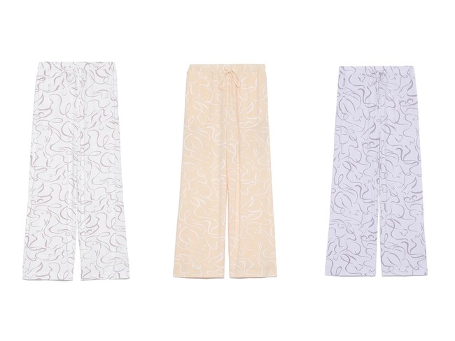 猫のシルエットを抽象的な線画にすることで大人も楽しめるプリントに仕上げたロングパンツ。滑らかなレーヨン混のカット素材にワイドシルエットを組み合わせ、リラックス感がありながらもスタイリッシュな佇まいを叶えました。お揃いのネコ開襟シャツとのセットアップとしても着用いただける一枚です。