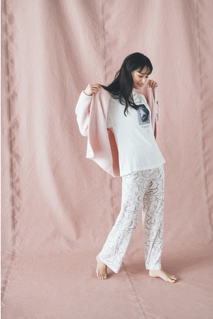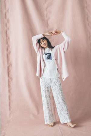SNIDEL HOMEでは、「着るほどに、きれいになる。」をコンセプトにテキスタイルに植物成分を配合したルームウェアを展開しています。今回のキャットコレクションには「ローズヒップ加工」を施しております。