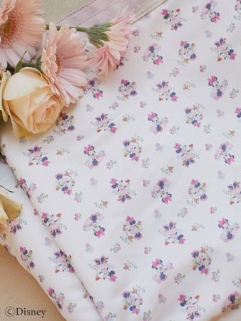 優しいピンクベージュと大人な印象のブラックの2色をご用意し、ピンク、ブラックそれぞれに合わせて、「ミニーマウス」のワンピースとトレードマークのリボンを異なるカラーでデザインしました。ピンクは可愛らしくガーリーに、ブラックはシックな「ミニーマウス」をお楽しみいただけます。また、裏地にもたくさんのお花に囲まれた「ミニーマウス」を総柄プリントしています。印象が変わる2種類の「ミニーマウス」を好みのテイストに合わせてお選びください。