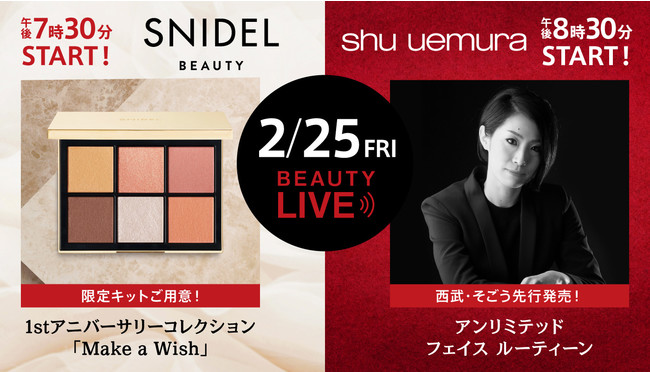 ■日時:2月25日(金) スナイデル ビューティー 午後7時30分~、シュウ ウエムラ 午後8時30分~