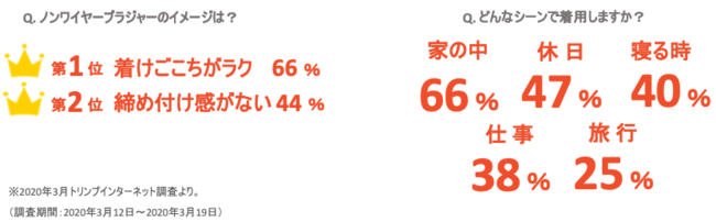 ノンワイヤーブラのアンケート結果を発表!イメージは「着けごこちがラク」が半数以上、「仕事中もノンワイヤー」派も4割も