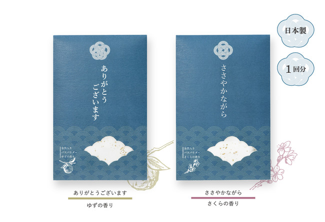 ゆずの香りには「ありがとうございます」、さくらの香りには「ささやかながら」の言葉を添え、シーンや相手を選ばないプチギフトとなっています。
