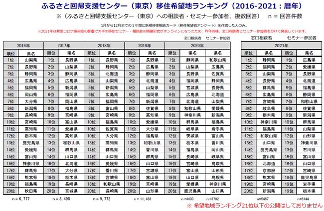 ~2021年ふるさと回帰支援センター窓口相談者が選んだ移住希望地~