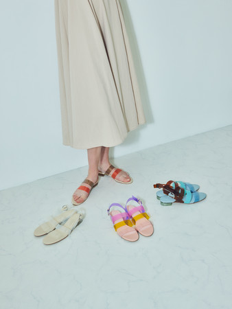 ペールトーンが目を引くサンダルは、ソールとのカラー配色で遊び心のあるデザインに。歩くたびに見えるソールのカラーがアクセントになります。