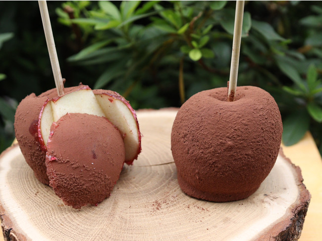 ビターでほろ苦いココアと飴の甘さとりんごの酸味が絶妙にマッチしたりんご飴。