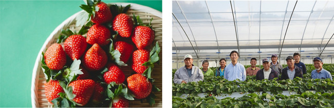 奈良県明日香村では20軒のいちご生産者がいます。年齢は70代から20代までと幅広いですが、生産者同士のつながりが非常に強く、経験や知識、また栽培技術も共有し、切磋琢磨しながら県内でも最高品質のいちごを出荷しています。粒が大きくツヤのある鮮やかな赤色の果皮に、果肉も赤みを帯びている〈あすかルビー〉は、果汁も多いためジューシーで糖度が高く程よい酸味があるのが特徴です。奈良県生まれなので「あすか」、そして光沢のある赤色がまるで宝石の「ルビー」を思わせることから〈あすかルビー〉と名付けられました。甘味と酸味のバランスがよく、優雅な甘い香りとさっぱりとした「いちごらしい」甘酸っぱさが味わえます。
