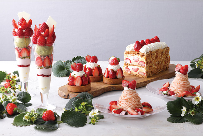 そのほか、桜あんのクリームを絞って仕上げた「苺とさくらの春色モンブラン」、香ばしく焼き上げたタルトとディプロマットクリームに苺をあわせた「苺のタルト バニラアイス添え」が、フェアの前半と後半にリレー式で登場します。