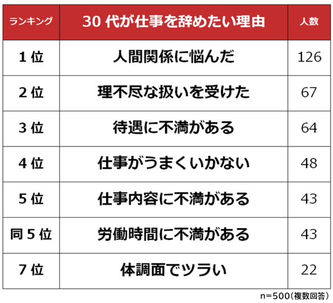 ・30代が仕事を辞めたい理由1位は「人間関係」