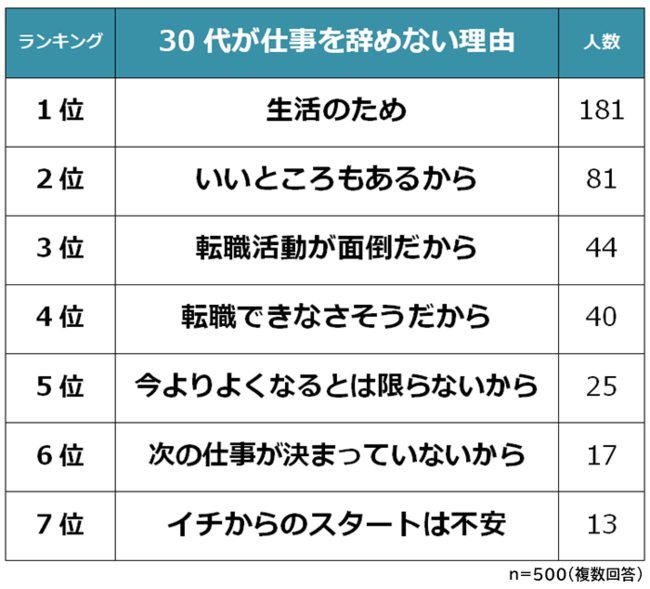 ・30代が仕事を辞めない理由1位は「生活のため」