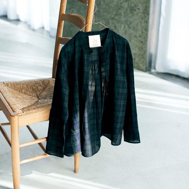 ブラックウォッチの播州織生地を使った、軽やかな羽織(はお)りシャツです。