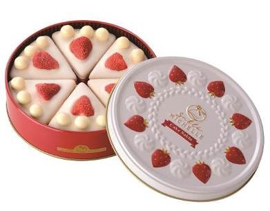 軽い食感のビスキュイの中に、苺のムースとホワイトチョコレートムースをとじこめて、国産苺を華やかに飾りました。