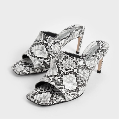 商品名:スネークプリント スティレットヒールミュール / Snake-Print Stiletto Heel Mules