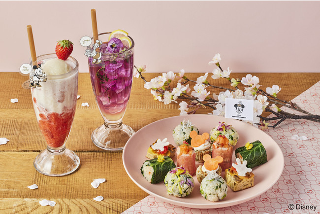 ミニーマウス&デイジーダックをイメージした「ピンク」「パープル」をテーマカラーに、一口サイズの手毬ごはんや巻き寿司のお食事メニューと抹茶餡や桜色のヨーグルトクリームなどを使ったオートミールパンケーキを楽しめるアフタヌーンティーセットや甘酒を使ったノンアルコールドリンクなど、日本の春を感じるスペシャルメニューをラインアップします。この春限定のスペシャルメニューをはじめ、当店のメニューは全て、ディズニーが提唱する「カロリー600kcal以下」「塩分2.5g以下」「脂質30%以下(カロリーに対して)」「トランス脂肪酸0」など、バランスの良い栄養成分に関する基準を満たしたヘルシーな商品をご提供しています。