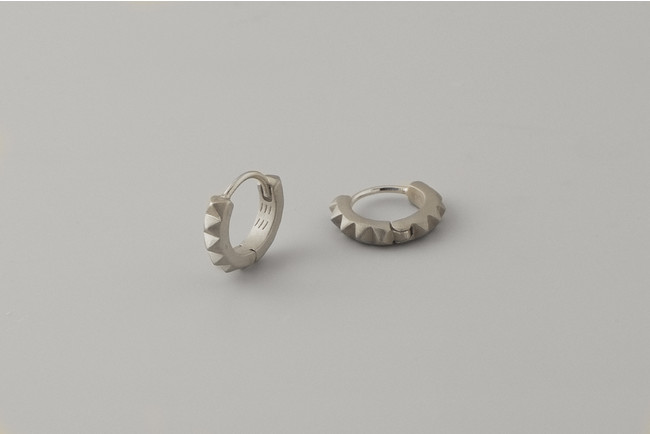 スタッズピアスは、ハードなイメージを持たれがちなスタッズを、マットな質感に落とし込む事で新しい印象に。