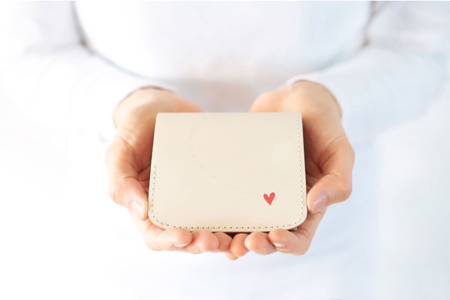 ホワイト一色のシンプルなカラーに、ワンポイントのハートをあしらったデザインのお財布で、白いお財布は新しいスタートを切るにも良いとされており、白い色は癒しの効果もあるそうです。
