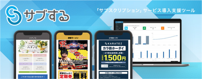 実店舗でのサブスクリプションサービスを、スマートフォンアプリで開始することができるパッケージツールです。現在「野郎ラーメン」にて、月額9,460円(税込)で1日1杯ラーメンをお召し上がりいただける「1日一杯野郎ラーメン生活」ほか、「カラオケの鉄人」の月額1,650円(税込)歌い放題サービス「カラ鉄ホーダイ」、「しぶそば」の月額3,500円(税込)で1日1杯そばをお召し上がりいただけるサービス「しぶそば定期券」、月額2,185円(税込)で店頭でお花を受け取れるサービス「ハナノヒ」、月額5,000円(税込)で日焼けマシンでのタンニングをご利用いただける「SOLE TIME」ほか、十数店舗以上の実店舗のサブスクリプションサービスを展開しています。