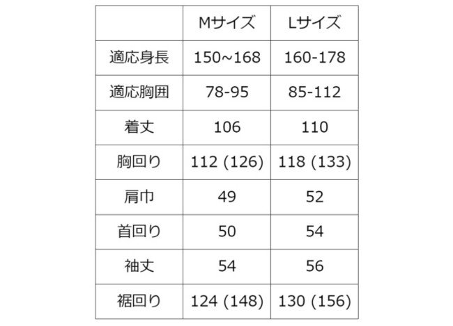 ※単位cm、カッコ内は後部スリットを伸ばした時のサイズ