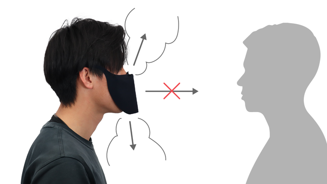 上部と下部に空気が逃げる構造で、吐いた息や煙が正面に拡散しにくい構造になっています。