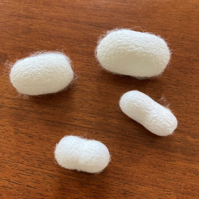 シルクの原料は繭。蚕の成長を妨げないように清潔で快適な環境を維持します。