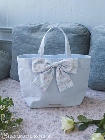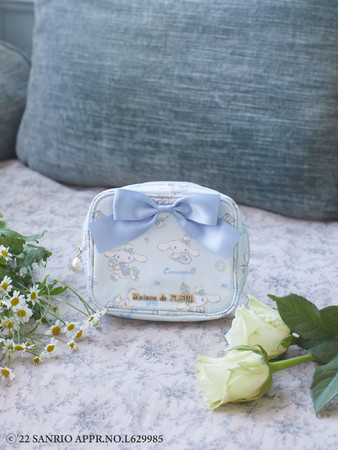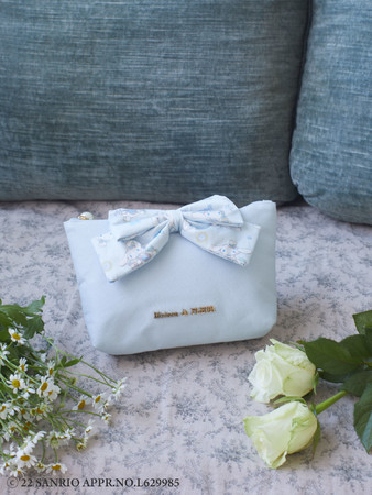 シナモロールブルーに染まったキャンバス生地に、Maison de FLEURのアイコンであるリボンを配したバッグとポーチは、「シナモロール」の総柄プリントのリボンがアクセント。「シナモロール」とのおでかけを楽しめる、日常使いにぴったりなアイテムです。