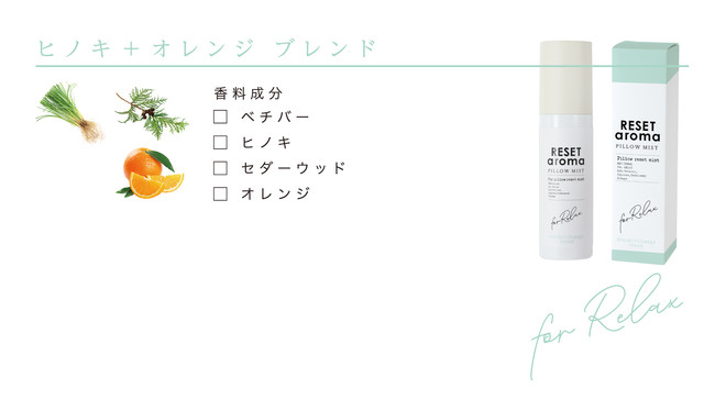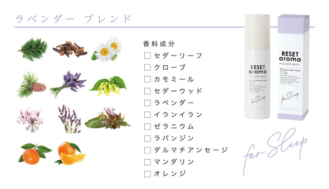 枕やお部屋にシュシュっとさせるリセットミストで心地よい眠りの準備をお手伝いします。