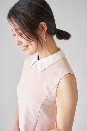 付け衿を外すと首を長く見せてくれるように計算されたクルーネックのデザインです。