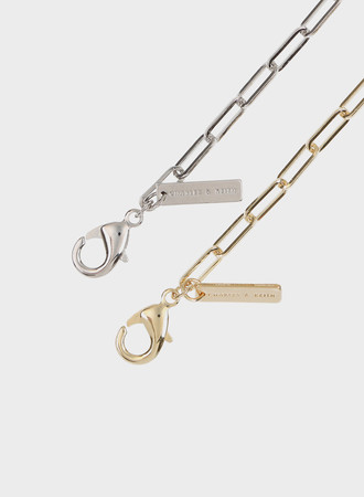 シンプルなチェーンにロゴ入りのプレートを施したマスクチェーン。ゴールドとシルバーの2色展開です。