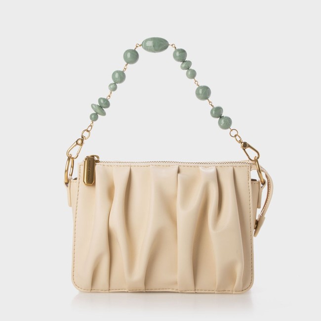 アクセサリー感覚で持つことができるビーズハンドルのショルダーバッグを、「CHARLES & KEITH 京都 ザ・キューブ 店」限定で先行販売します。くしゅっとした女性らしいデザインが程よい甘さを演出するデザインです。持ち手は付属のレザーハンドルに付け替えが可能です。