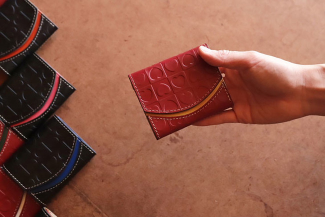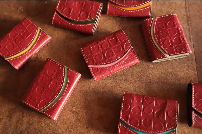 大阪府茨木市で革小物の製作・販売をするクアトロガッツ (代表:中辻大也 ナカツジヒロヤ)は、全て中の色が違う一点物のハート柄の小さいお財布を発売します。価格は 9,800円(税込10,780円) 公式HPにて発売中です。https://quatrogats.com/?mode=grp&gid=2338806