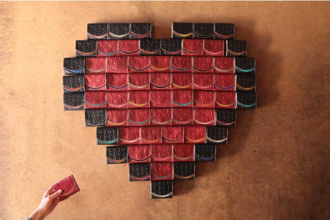 ハートのお財布は、同じものは一つとない「世界で一つだけ」のシリーズで、中のカラーリングが全てちがう一点もの。あなただけのお気に入りを探していただけます。