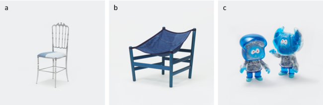 a)<Sense by Lloyd's Antiques >キアヴァリチェア 159,500円、b)<カリモク家具> Hammock Chair 184,800円、c)<3LFTN apartment>HUMAN ROBOT TOYS ショックン・ワッサン 16,500円