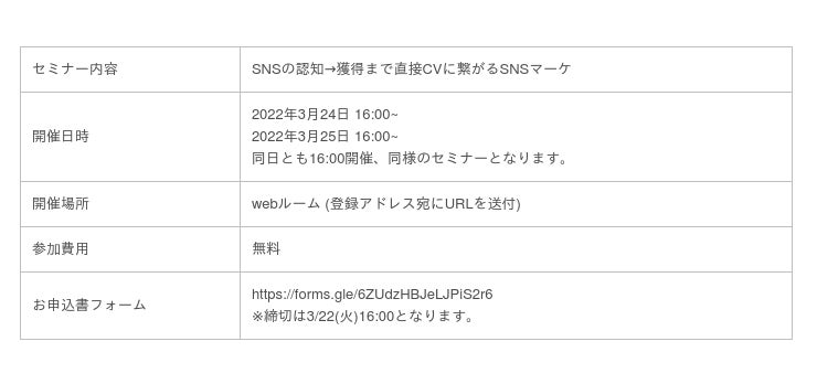 SNSの認知→獲得まで直接CVに繋がるSNSマーケティングセミナー