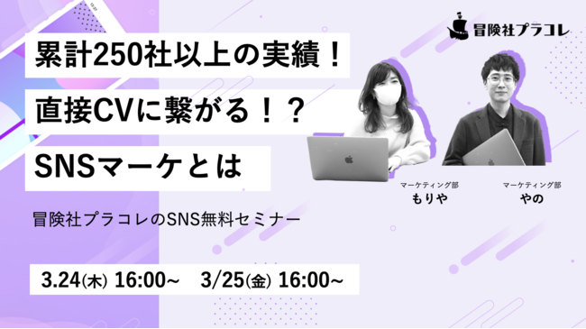 花嫁アプリ「PLACOLE & DRESSY」を運営する、冒険社プラコレ(本社:神奈川県鎌倉市、代表取締役CEO:武藤功樹)は、「総フォロワー数60万人」と「累計250社以上のSNS運用、マーケ実績」を活かし、SNSの認知→獲得まで直接CVに繋がるSNSマーケティングセミナーを開催することが決定しました。