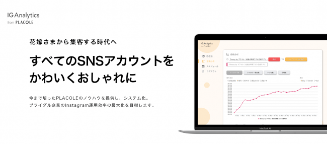 SNSマーケティング事業を展開しているプラコレは、SNS運用でお困りのブライダル企業を今まで以上にサポートするために、「IG Analytics」をリリース。そして、より多くのInstagramアカウントをかわいくおしゃれに、SNSを活用して 卒花から集客できる時代を目指す為に『ハッシュタグ自動抽出機能』やビジネスでのInstagram利用が増加した現在、さらなる業務効率化を目指し、無期限利用できる『ファイルデータ保存機能』をリリース致しました。