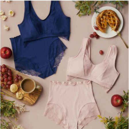 おうちで過ごすリラックスタイムのための人気シリーズ「コンフォートタッチ」に、新たに2アイテムが仲間入りします!既存の2タイプに新たに加わる「AMOSTYLEホールドナイトブラ」は、まるでさらしを巻いているかのようにバストをしっかりホールドしながらも、締め付け感のないラクちんな着けごこち。「AMOSTYLEコンフィナイトショーツ」は、寝ている間に締め付け感なくはけるノンストレスなお腹すっぽりショーツ。どちらも肌触りの良い綿混のリブ素材を使用。レースをあしらったフェミニンなデザインも魅力です。