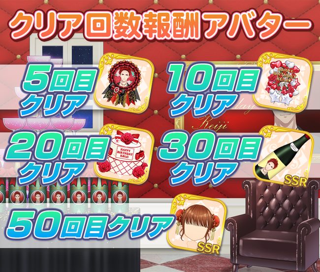 クリア回数に応じて、前田慶次バースデー限定の豪華報酬がゲット出来る(ハート)