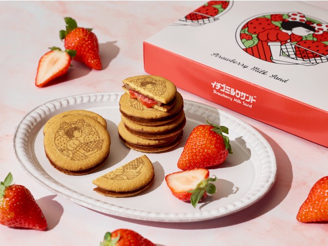 イチゴとラズベリーのペーストをスペイン産ミルクチョコレートで包み、練乳を含んだ香ばしく優しいクッキーでサンドしました。ひとくち頬張れば幸せな香りが口いっぱいに広がります。