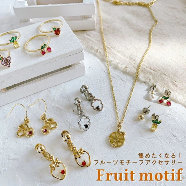 同じフルーツでコーディネートを揃えても可愛い、身に着けやすいプチサイズです。
