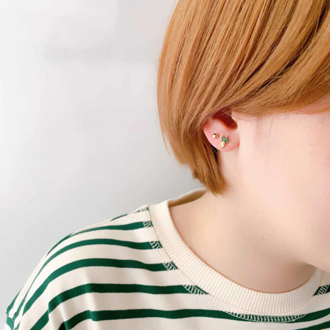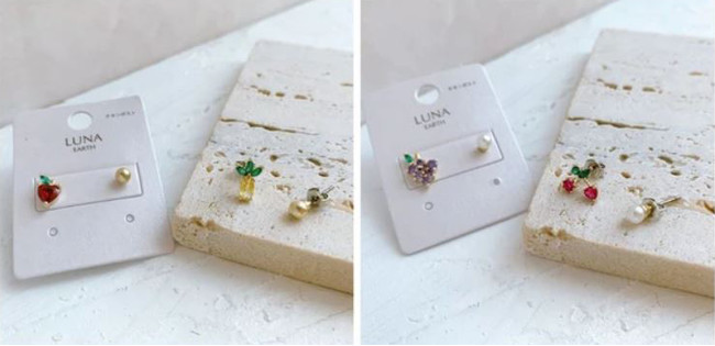 合わせて付けたいベーシックなパールorメタルのピアスとセットなのも嬉しい。