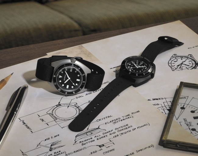 その後、米軍はベンラス社とMIL-W-50717の軍事契約を結び、特に秘密作戦のための新しいダイバーズウォッチの設計および製造を依頼しました。ベンラス社は米軍のニーズに応えてTYPE I, TYPE IIを設計し、1972年頃から1980年まで製造。TYPE I はベトナム戦争中、UDT(水中破壊工作部隊)、ネイビーシールズ、CIAエージェントおよび深海潜水や特殊部隊の現場の特殊工作員に提供できる非常に堅牢な時計となり、これまでに製造された中で最も優れた米軍のダイバーズウォッチの1つになったと言われています。タイプIIモデルは、タイプIと組み合わせて製造され、現場の兵士やオペレーターにより適した12/24時間のダイヤルを備えていました。一般に販売されることはありませんでした。ケースのデザインは、「モノコック」ケースを選択。裏ブタが無いデザインで、当時のほとんどの時計とは異なりました。ケース自体はすべて鋼ブロックから機械加工されていたのです。ムーブメントにアクセスする唯一の方法は、ドーム型のクリスタル、針、ダイヤルを外すことです。この設計により、時計の耐久性が大幅に向上したと言われています。