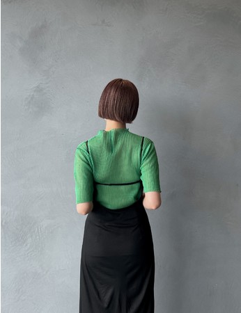 1枚で快適に美しい装いも、シアートップスやボディスーツをインナーに差し込んだスタイリングもおすすめ。