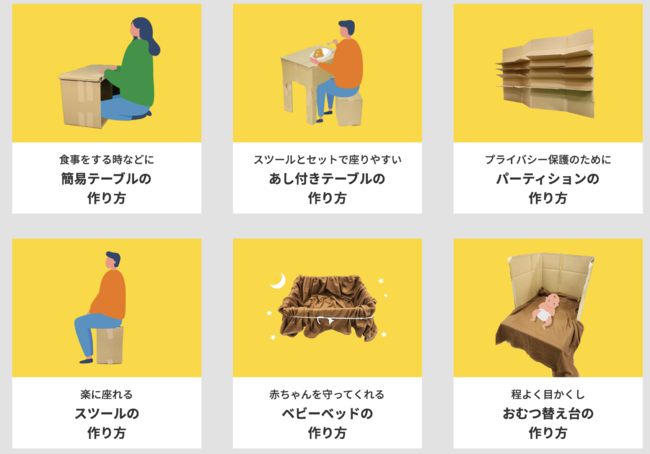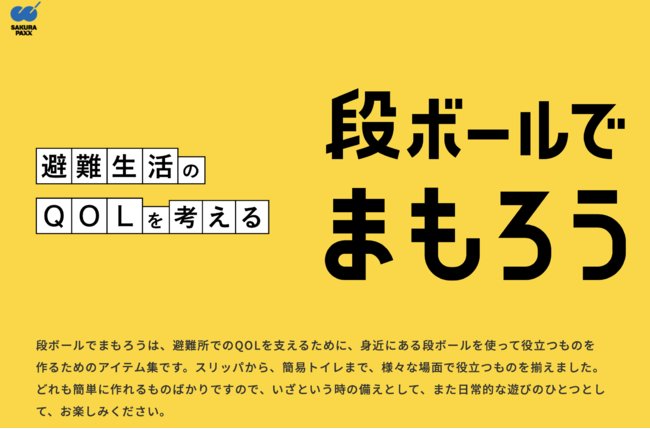 段ボールの可能性を追求するサクラパックスは、これまで段ボールベッドやパーティション等を開発してきました。これらのハード提供に加え「知識」を提供することで、避難所のQOL支援につなげます。