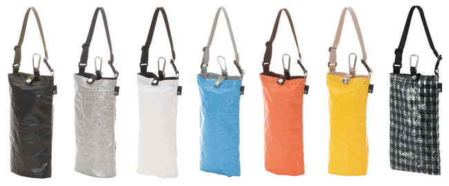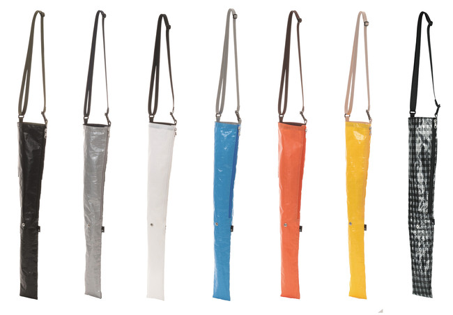 SN.CASA.ナガ-A 2,200円(6746 01 BLACK、02 SILVER、03 WHITE、04 CYAN、05 ORANGE、06 YELLOW、07 CLEAR BLACK)サイズ:W15×H70cm(折畳時W15×H16cm) ショルダー:最長時120cm 素材:ポリエチレン 持ち手/ポリプロピレン ドットボタン ポケット:外側1箇所 ※01~06 発売中、07 3月中旬より発売予定