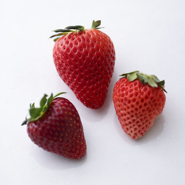 ジューシーで酸味が少ない「スカイベリー」、濃い紅色で糖度が高い「真紅の美鈴」、桃に似た芳醇な香りで淡い色合いの「桃薫」を、深い味わいとなめらかな口どけにこだわったカスタードクリームとシャンティーとともに、しっとりふんわり甘さ控えめに仕上げたスフレ生地でサンドしました。