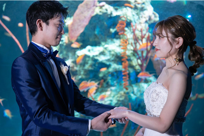 昨年秋、神戸に新しくオープンした都市型水族館「atoa(アトア)」で、ウエディングフォトなどのサービスを手掛ける「VOYAGE KOBE(ボヤージュコウベ 所在地:神戸市中央区新港町7番2号)」が新たに水族館挙式プランをリリースしました。アクアリウムと舞台美術、デジタルアートが融合した貸切の空間でここでしかできない特別な挙式を演出いたします。