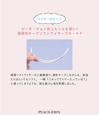 3. ピーチ・ジョン史上もっとも薄い!極薄Wキープソフトワイヤーでホールド。肌当たりもとってもソフト。