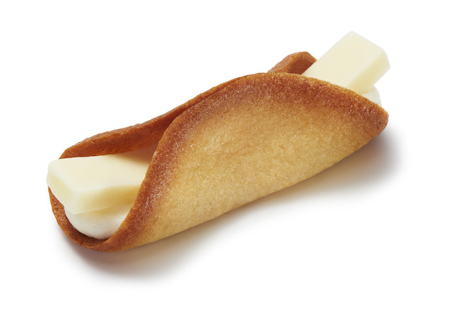 ゴーダチーズがほんのり香るチュイールに、ミルククリームとチーズ味のスティックチョコレートをはさみました。