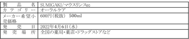 小林製薬株式会社(本社:大阪市、社長:小林 章浩)は、くり返す口臭に、“炭※1”で口を爽やかにするマウスリンス「SUMIGAKI/マウスリンスSG」(販売名:マウスリンスSG)を、4月6日(水)から新発売いたします。